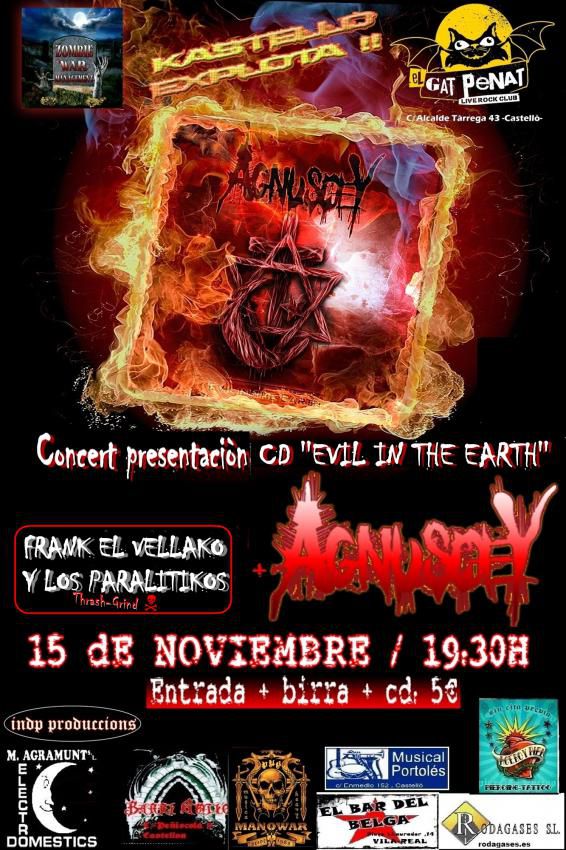Concert presentaciò del Cd de AGNUSDEY ''Evil in the Earth'' tambe estara la nova banda Grind '' Frank el Vellako y los Paralitikos'' se espera bona festa..!!