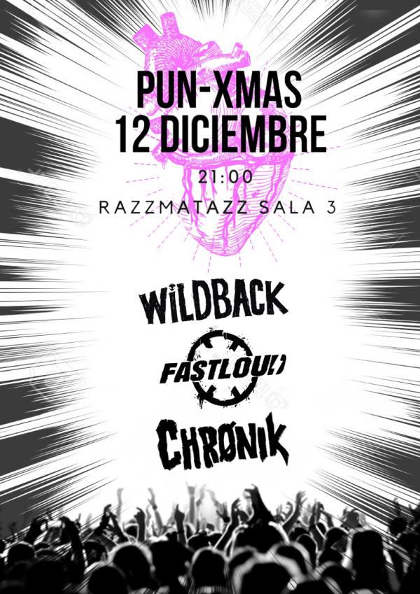 ¡El día 12 de diciembre celebra la navidad más punk con PUN-XMAS! Conciertos de Wildback + Fastloud + Chronik en Razzmatazz 3. Entradas anticipadas: 3€ (próximamente). Entradas taquilla: 5€. Con la colaboración de SAE Institute Barcelona???? ¡Merry PUN-XMAS!