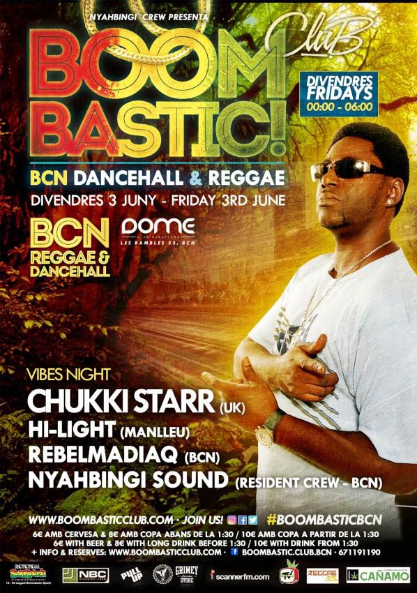 Una de las voces más populares del reggae británico vuelve a Barcelona para repasar algunos de sus temas más conocidos. Acompañado por Nyahbingi Sound, Chukki Starr promete una noche de puras vibes. Completan la noche dos top sounds catalanes: Hi-Light Sound y Rebelmadiaq. Mad ting! Todos los viernes de 00h a 06h el mejor reggae y dancehall en el centro de Barcelona!