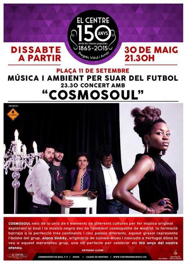 COSMOSOUL neix de l'unió de 5 elements de diferents cultures per fer música original explorant el Soul i la música Negre. La formació barreja a la perfecció tres continents i cinc països diferents. Una nit perfecte per celebrar els 150 anys del nostre Ateneu.