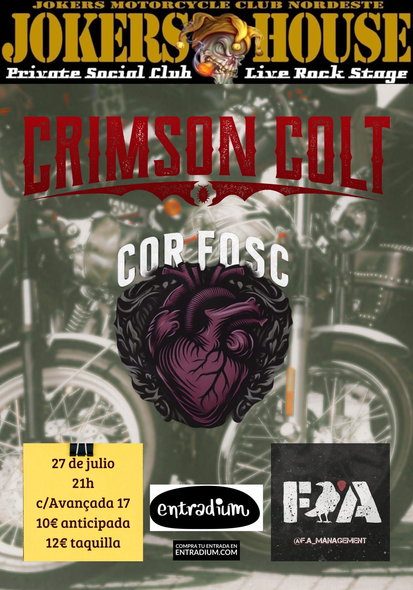 El concert de metal perfecte per tancar el mes de juliol. Amb influències que van des d'Alter Bridge, Metallica i Periphery, Crimson Colt i Cor Fosc repartiran canya a la sala Jockers House de La Verneda, a Barcelona. Aconsegueix la teva entrada anticipada per no perdre't el concert menys esperat de l'estiu, però que serà el teu record més memorable, sens dubte (sempre que no hagis anat a veure Rammstein al Palau a principis de juny. En aquest cas, poc podrà superar això).