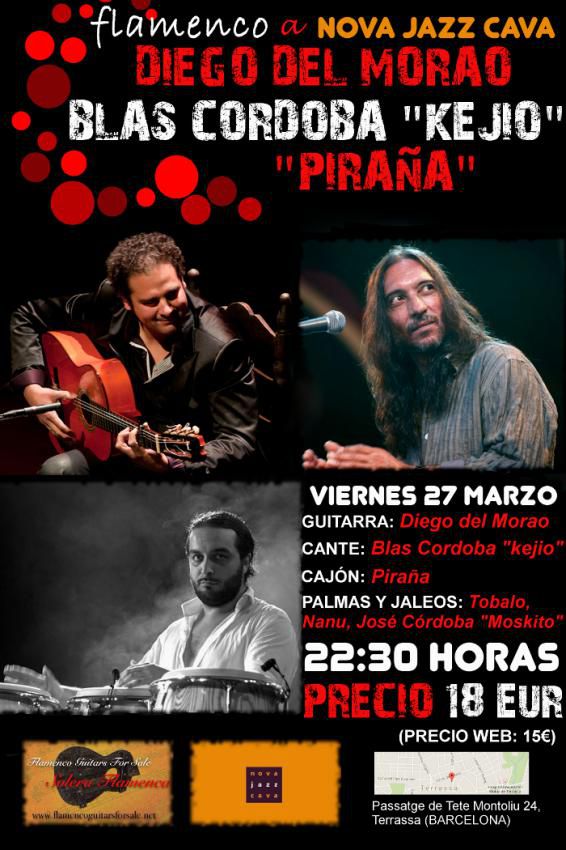 Solera Flamenca organitza un dels concerts més esperats de l'any, on es donaran trobada per primera vegada en un escenari, la guitarra de Diego del Morao i la veu de Blas Córdoba "El Kejío" acompanyats per Israel Suárez "Piraña" a la percussió. Una trobada plena de màgia mes que recomanable!