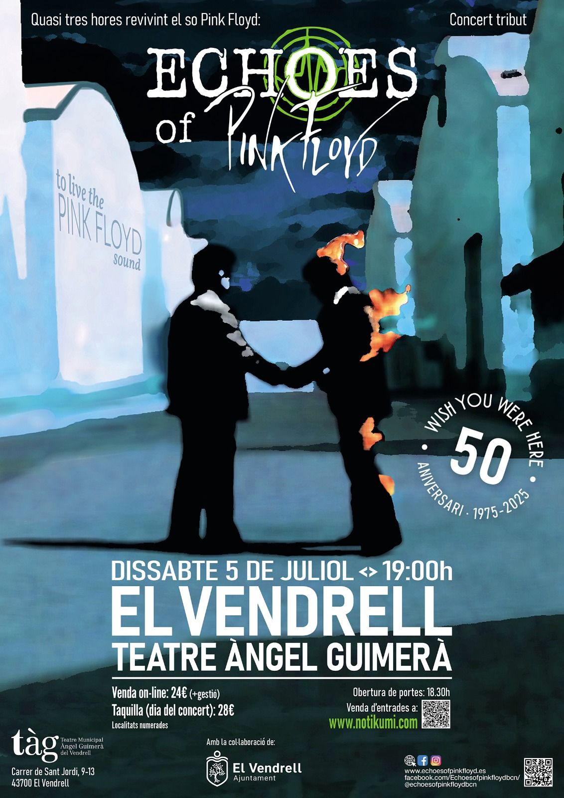 Echoes Of Pink Floyd recrea amb fidelitat el so del quartet anglès acompanyat d'un espectacle visual de llums, projeccions i efectes de so. Amb un show de gairebé tres hores Echoes celebra el 50 aniversari de l'àlbum Wish You Were Here amb la interpretació integra dels seus temes i d'altres que van fer grans els Pink Floyd.