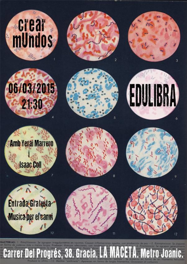Després de girar per gairebé tot l'estat presentant el seu disc La Maquina Deseante. Edulibra torna als escenaris amb una nova proposta anomenada “Crear mons”. Una nova manera de mostrar cançons per despertar i tornar a la utopia, des de ritmes que van del hiphop al funk, passant per la samba i la rumba. En aquesta ocasió l´acompanya Yerray Marrero a la bateria i Isaac Coll al baix. A La Maceta, Gracia. Entrada Gratüita!.