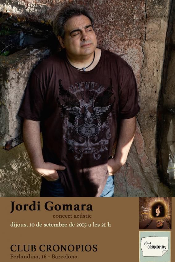 Jordi Gomara actuarà en acústic (veu i guitarra) al Club Cronopios de Barcelona.