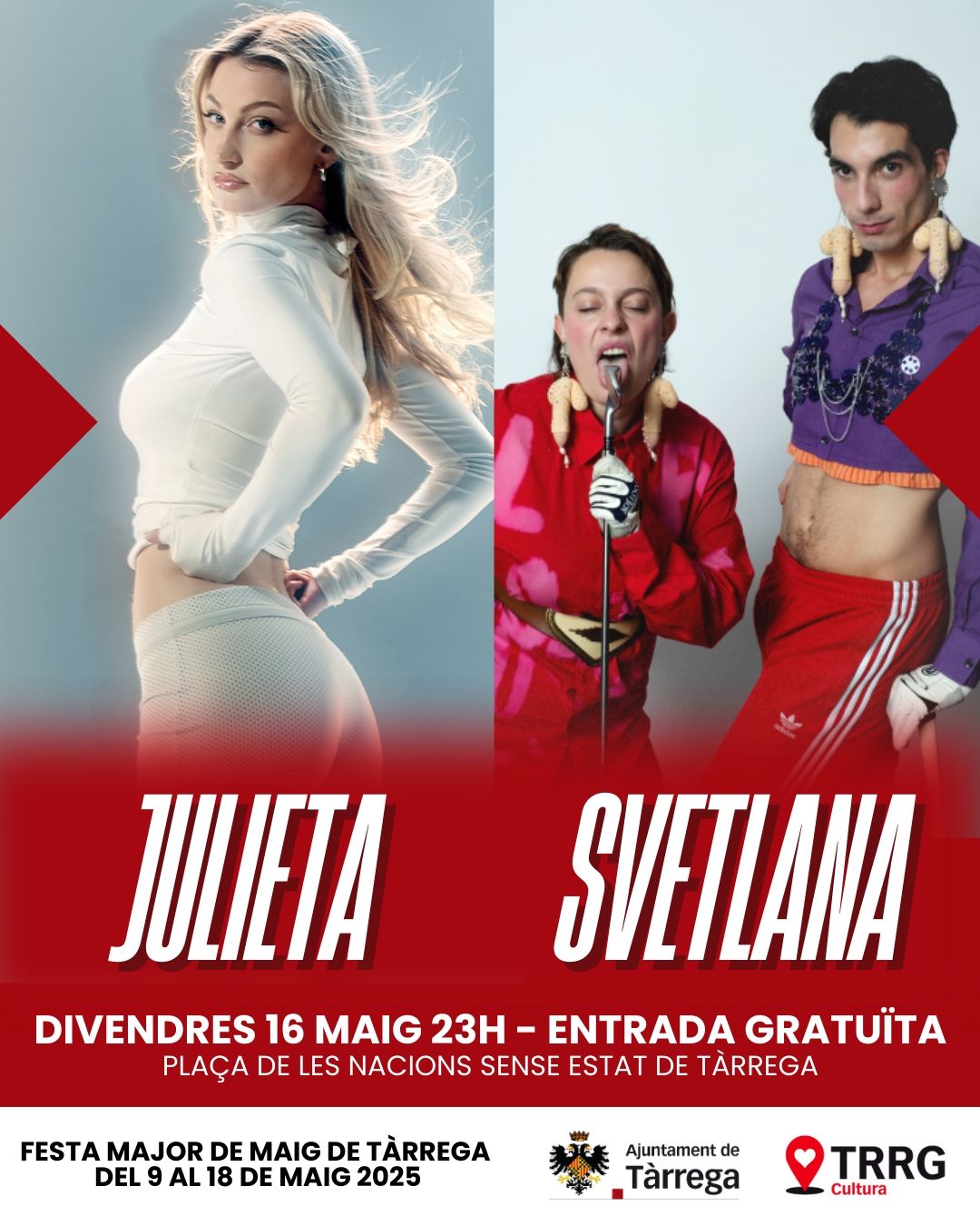 El divendres 16 de maig a les 23 h se celebrarà el doble concert de Julieta i Svetlana a la plaça de les Nacions Sense Estat de Tàrrega.