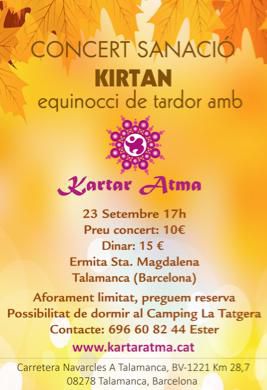 De tot cor, esperem que tot aquell que vingui a compartir aquest kirtan amb nosaltres, connecti amb la seva divinitat i amb l'univers. Us esperem amb amor el proper dissabte 23 de setembre a l'ermita de Santa Magdalena de Talamanca, Barcelona.