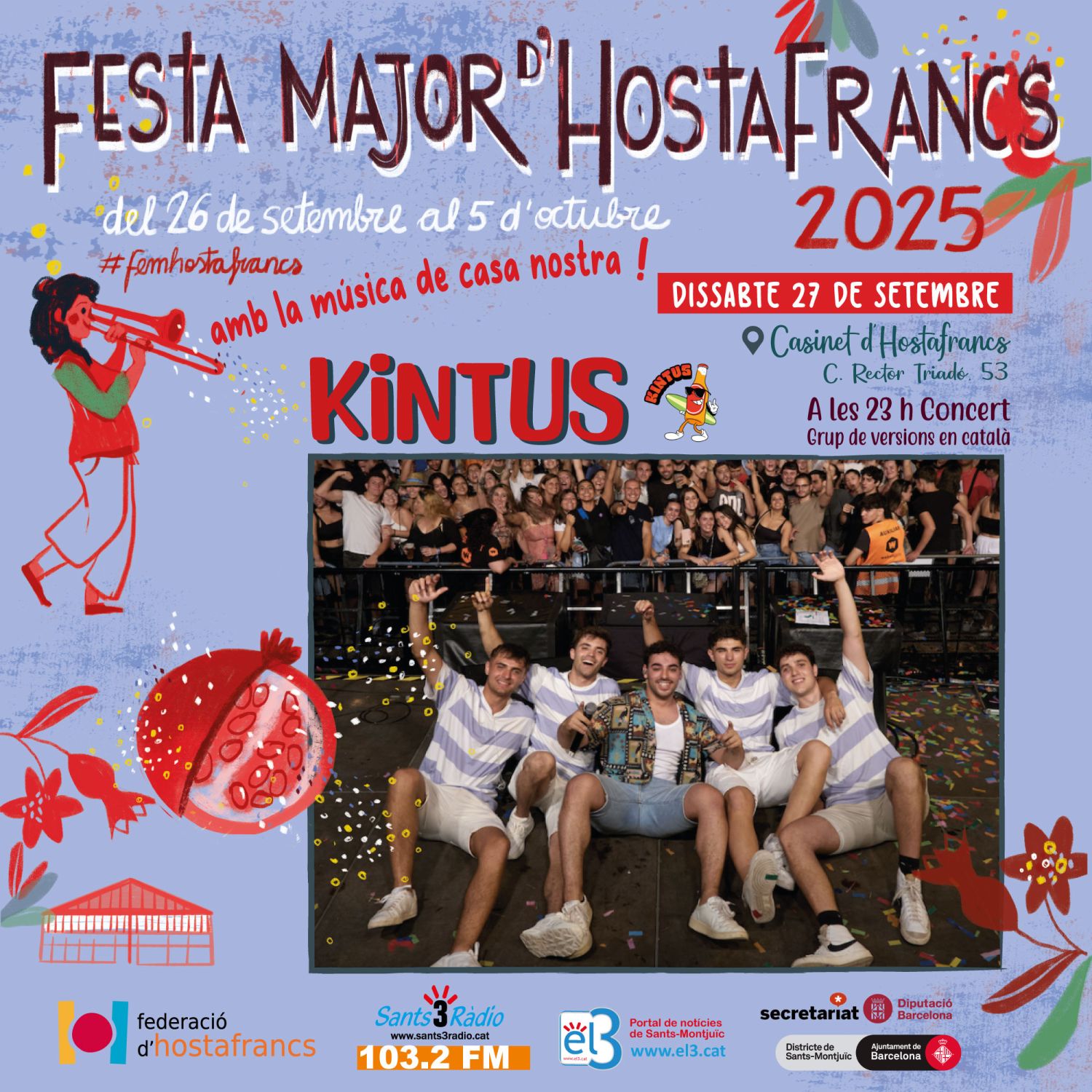 - Dissabte 27 de setembre a les 23 h el grup de versions Kintus al CC Casinet d'Hostafrancs.