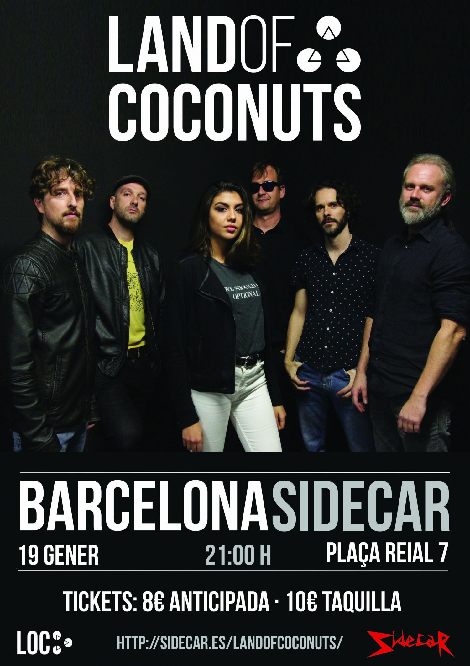 Land of Coconuts es un sexteto de Barcelona que navega entre el pop optimista y el rock contundente con coloraciones power pop y toques electrónicos. Subidos a la ola indie, su sonido se caracteriza por las bases heterogéneas y las melodías libres, soñadoras o rebeldes, según el caso. Aunque componen principalmente en inglés, esta vez también nos presentarán Les Hores, su segundo single editado en catalán.