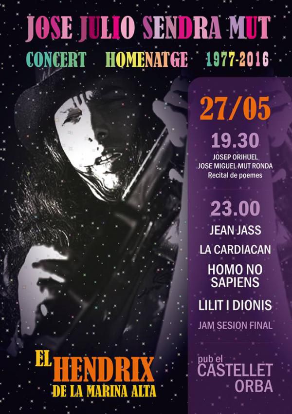 Festa homenatge al guitarrista d'Orba, en la qual actuaran els grups Jean Jass, La Cardiacan, Homo no Sapiens, Lilit i Dionís i els poetes Josep Orihuel i José Miguel Mut Ronda.