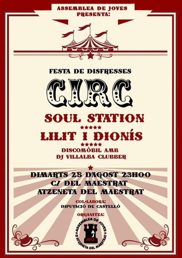 Enguany la temática de la festa será el món del circ i estarà amenitzada per l'actuaciói del grup local Soul Station i per Lilit i Dionís amb el seu folk rock de La Marina.