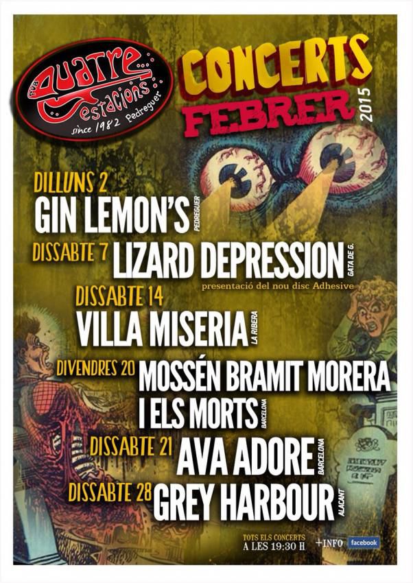 Amb un espectacle digne del millor rock alternatiu, els Lizard Depression presentaran el seu nou disc "Adhesive" que serà posat a la venda, i en primícia, allà mateix! Us animem a tots/es a que us acosteu a gaudir d'una vesprada memorable!!!