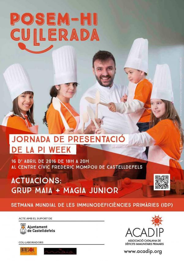 L'Ajuntament de Castelldefels ha organitzat un acte de presentació de l’Associació Catalana de Dèficits Immunitaris Primaris ACADIP el proper dissabte 16 d'abril de 18h a 20h, al Centre Cívic Frederic Mompou amb ocasió de la setmana mundial de IDP: les IMMUNODEFICIENCIES PRIMARIES.
