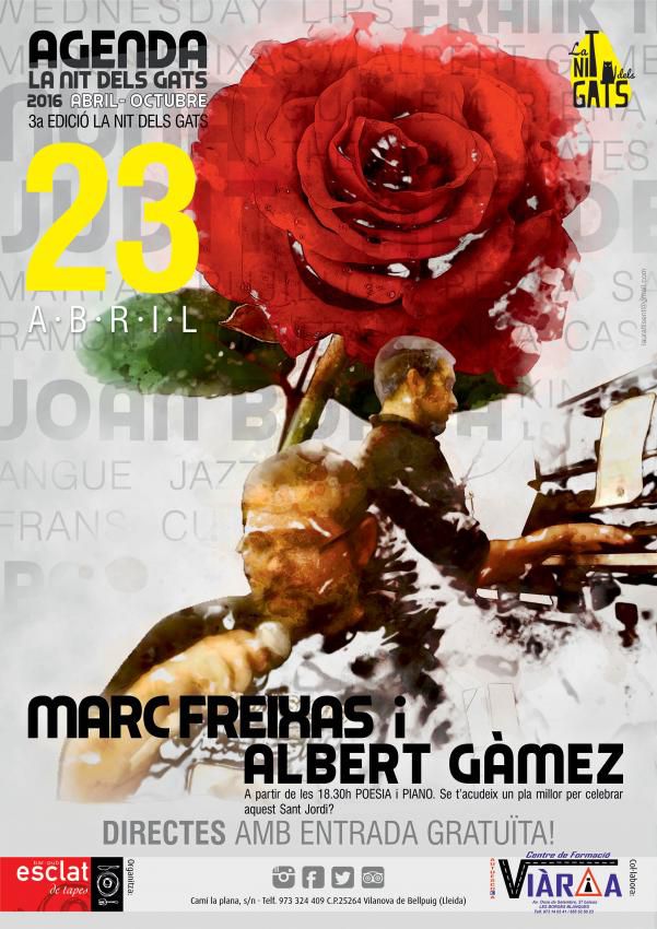 Marc Freixas és un poeta de versos lliures. Albert Gàmez és un cantautor amb piano.