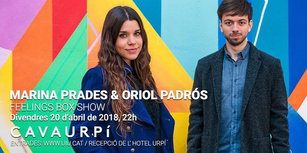 "Marina Prades i Oriol Padrós, ens presenten Feelings Box Show, un espectacle musical on les dues veus interpreten i ofereixen de bracet amb l’embruix de la guitarra i el violí, un concert on el nus dels grans èxits de la història de la música vivifiquen l’esperit i es queden a viure per sempre en l’ànima de cada espectador."