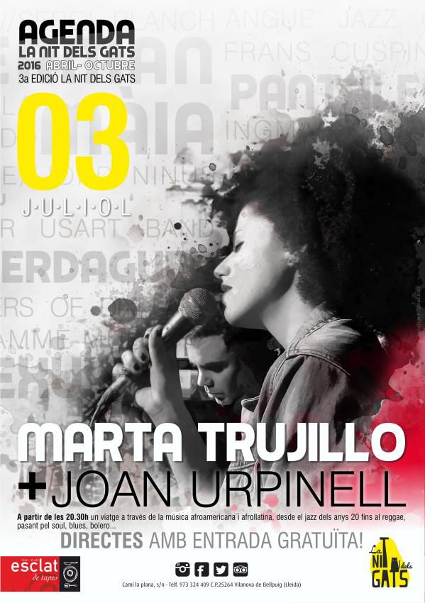 Marta Trujillo ens endinsarà en un viatge a través de la música afroamericana i afrollatina, des del jazz dels anys 20 fins al reggae passant pel soul, blues, bolero,...
