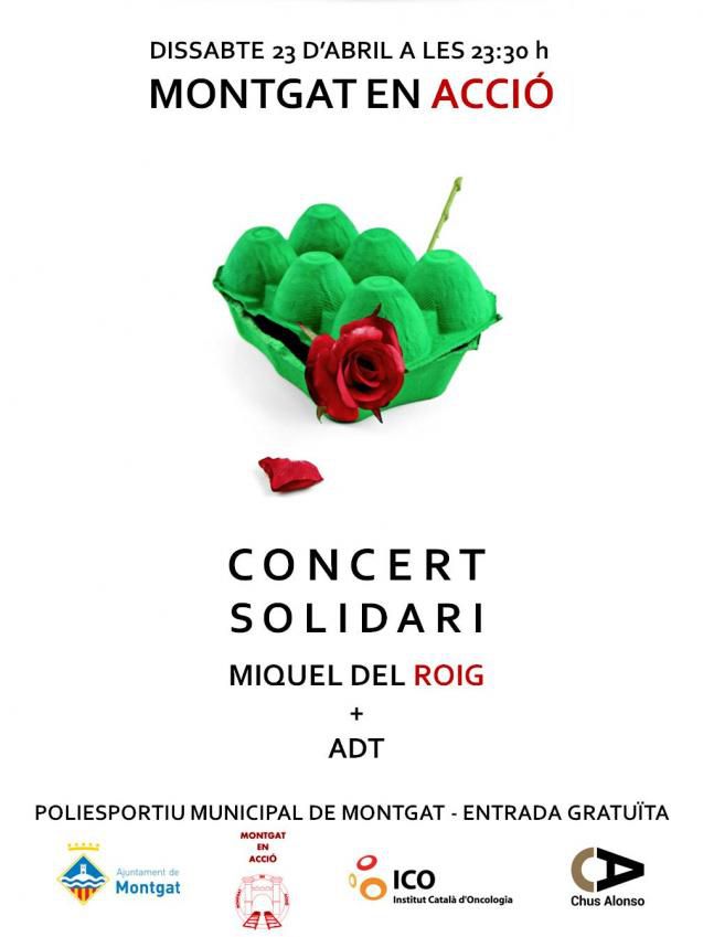 El pròxim 23 d’Abril amb motiu de la Festa Major de Sant Jordi organitzem un concert solidari en que hi actuarà Miquel del Roig i ADT en acústic. L’esdeveniment tindrà lloc al Poliesportiu Municipal de Montgat a les 23:30h. L’entrada és gratuïta i tot el que recaptem en el servei de bar anirà íntegrament destinat a la nostra associació.