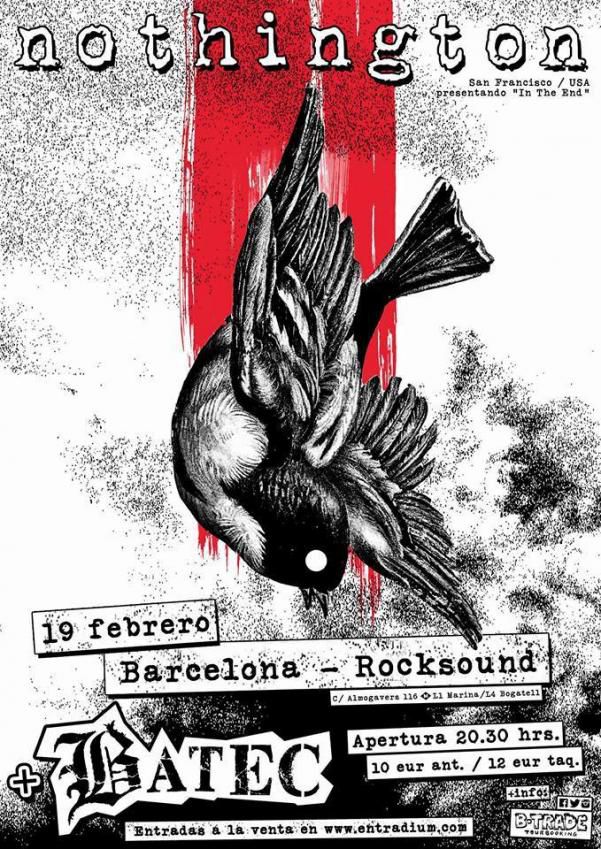 Concert dels NOTHINGTON veterana banda de punk rock melódic desde San francisco (USA) que ens presentaran el seu nou disc al rocksound. Es la tercera vegada que venen a Barcelona i no han defraudat mai. Els acompanyaran "BATEC"(Vallès/Ponent) presentant "Ara i sempre" el seu lp debut. Son una banda de punk rock en català amb temes melòdics i agresius que no estan deixant indiferents a ningú en el seus concerts.