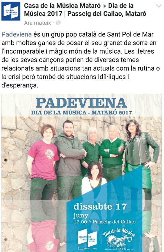 Els Padeviena en el seu debut presentant el seu primer treball "A Contrallum". Unes cançons mediterrànies, fresques i atemporals que no et deixaran indiferent