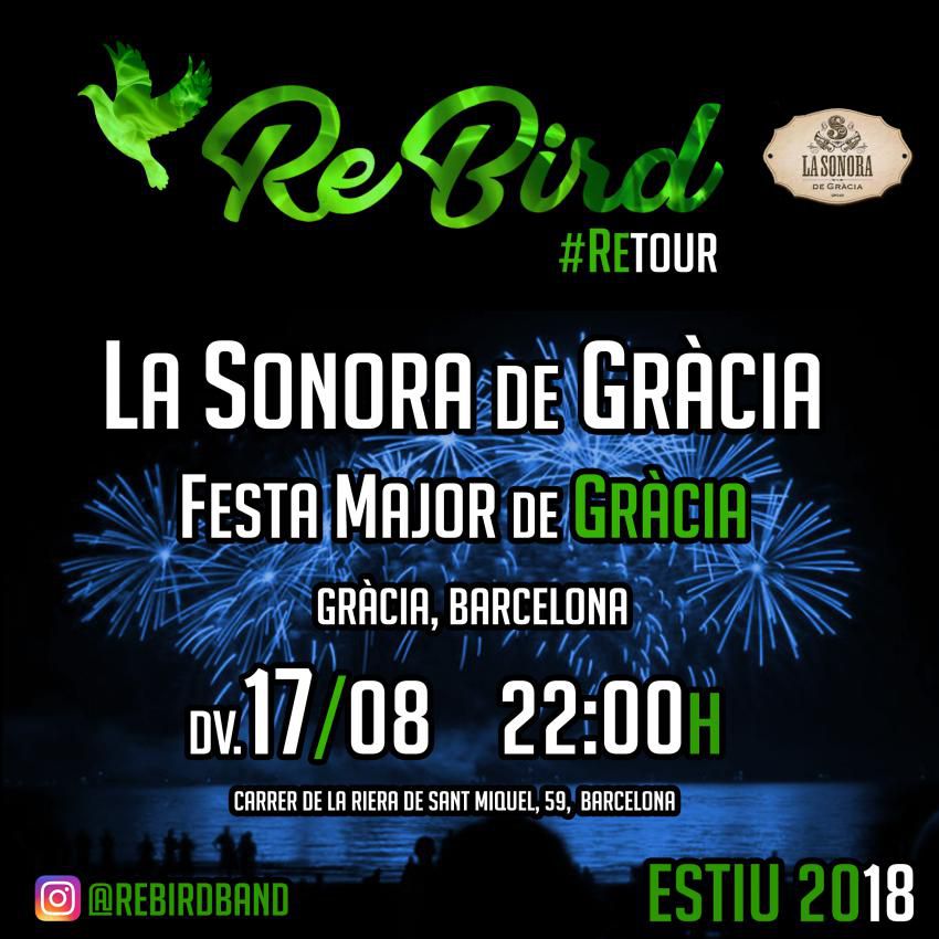 ReBird tocaran el proper divendres dia 17 d'agost a LA SONORA DE GRÀCIA coincidint amb les Festes de Gràcia.