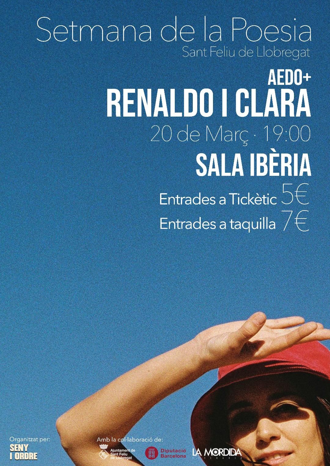 RENALDO & CLARA: Són un grup lleidatà de música liderat per la compositora i cantant Clara Viñals. L'Amor fa calor, publicat al setembre del 2020, és el disc que suposà l'ascens definitiu del seu pop cap a un nou cim. Confiança, atreviment i evolució en un treball que conté noves cançons plenes d'originals lletres que oscil·len entre una honestedat desarmant i la ironia més punxant. Vindran a Sant Feliu en format duet.