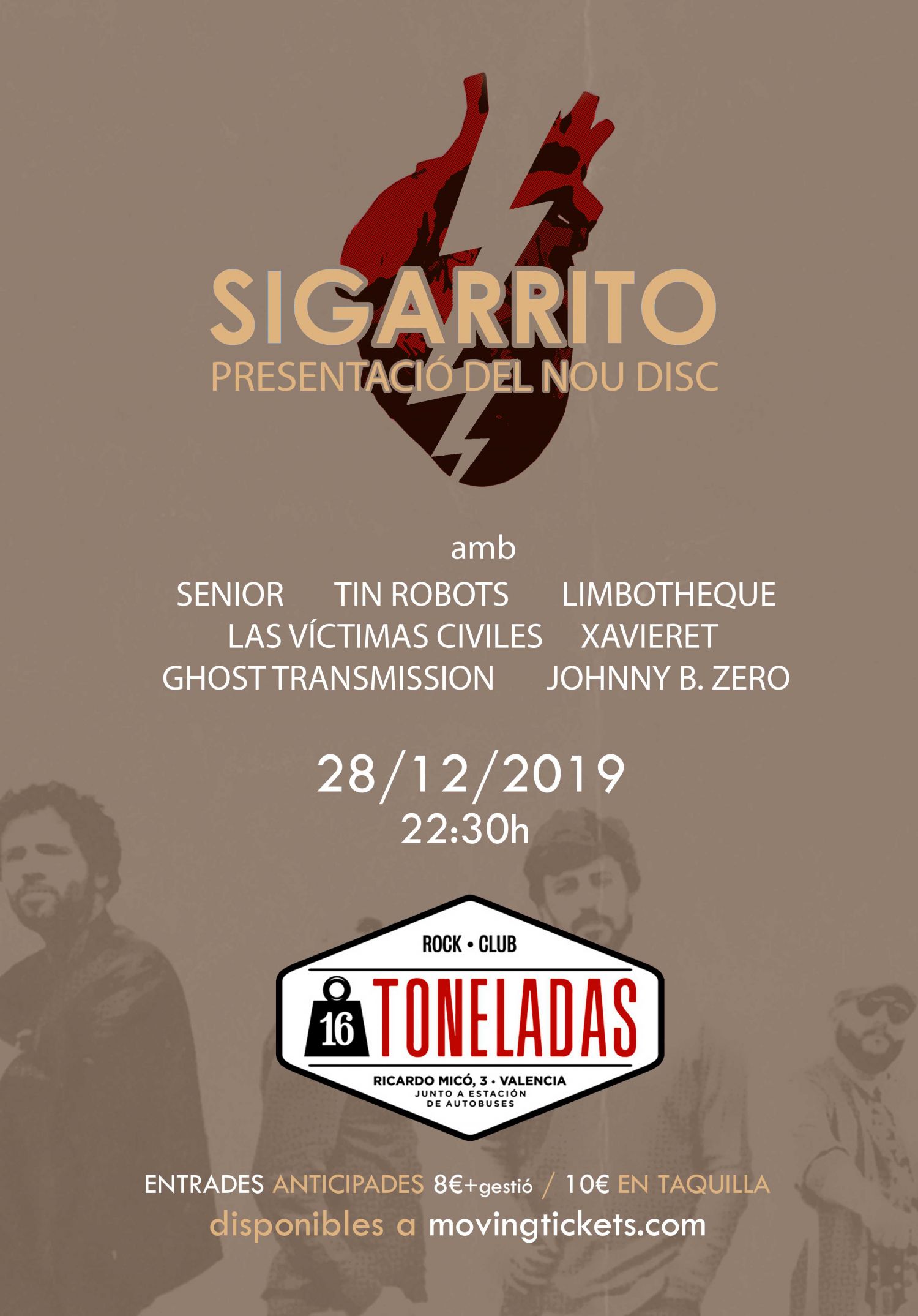 La banda de pop rock de l'Olleria Sigarrito publica nou disc i celebra el seu desé aniversari envoltat d'amics com Senior, Tin Robots, Limbotheque, Las Victimas Civiles, etc.