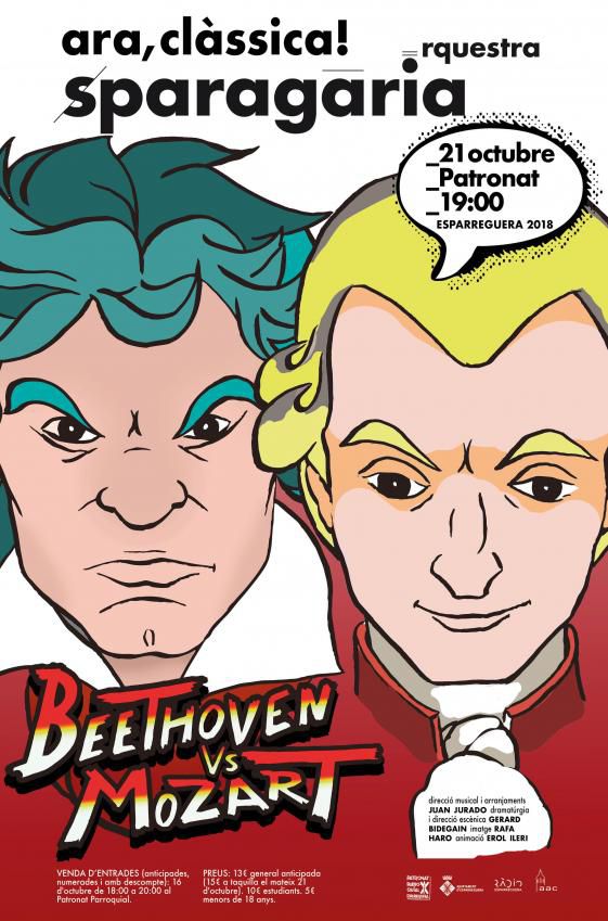 "Ara, clàssica!" proposa un versus entre dos dels compositors més coneguts de la història de la música occidental. Un duel musical en que Ludwig Van Beethoven i Wolfgang Amadeus Mozart enfronten els seus genis musicals i els seus caràcters, de conegut contrast: Beethoven, el sord de Bonn, fosc, misteriós i romàntic; Mozart, el nen prodigi que mor, nen, amb 36 anys. Passeu i gaudiu d'aquest espectacle. Qui guanyarà?