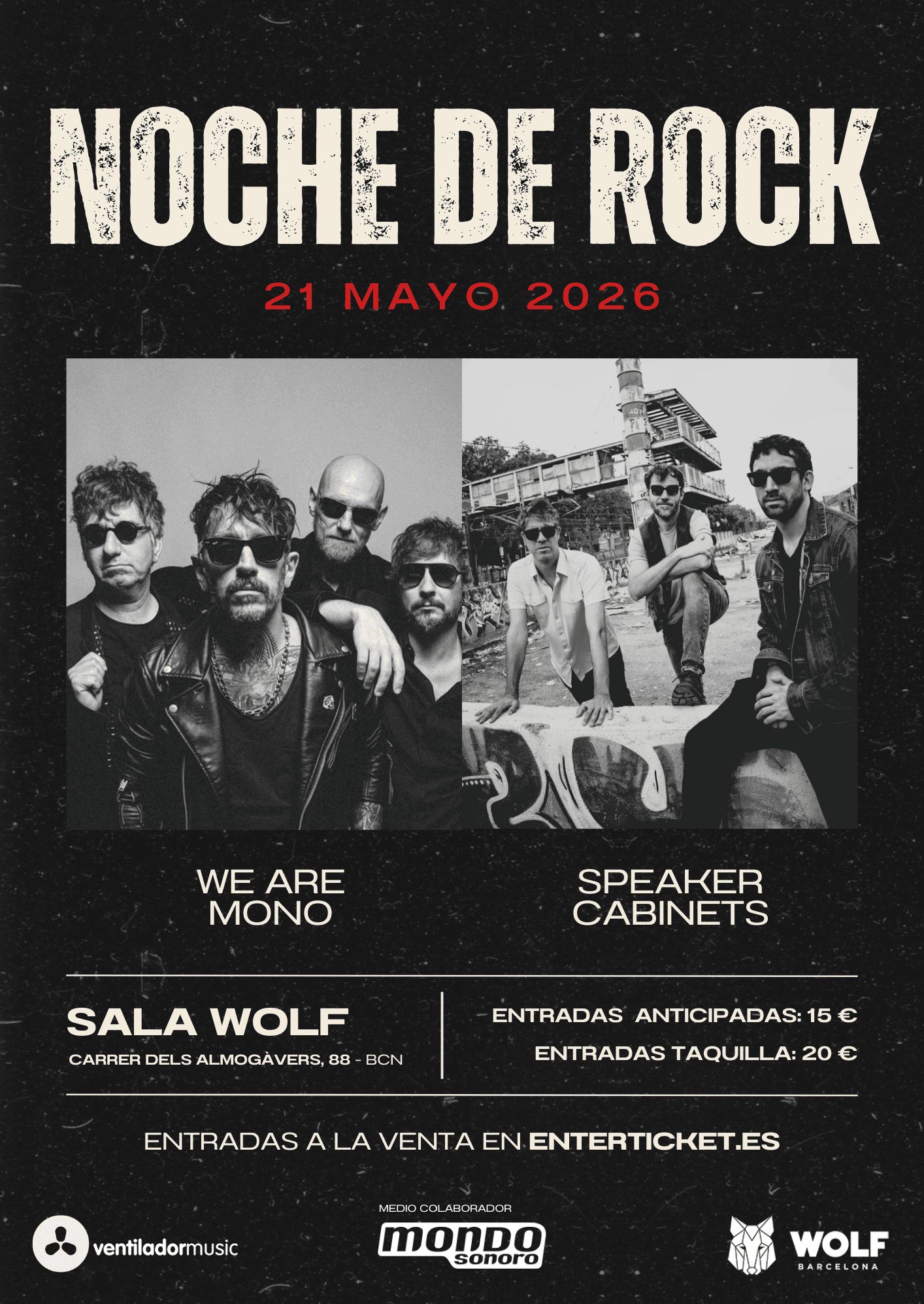 Doble concierto: "Speaker Cabinets" + "We Are Mono" en Sala Wolf (Barcelona) 21 de mayo 2026