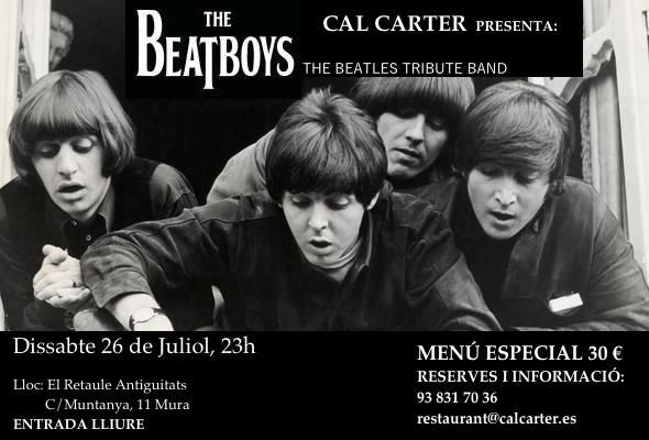 Aquest dissabte 26 de juliol actuarà a la terrassa de la botiga d’antiguitats El retaule el grup The Beatboys- The Beatles Tribute Band.