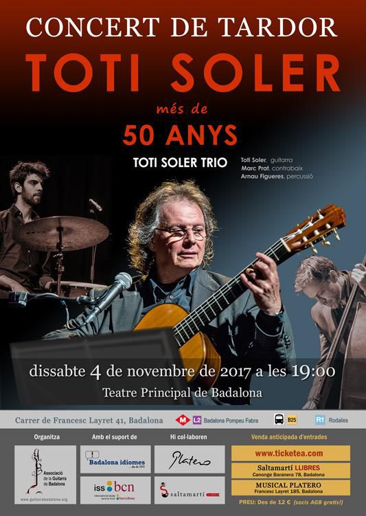En aquest concert Toti Soler ens proposa un recorregut captivador pel seu univers exquisit, a través dels millors temes que ha escrit durant els més de cinquanta anys dedicats a la creació musical, sempre amb la seva forma personal, sensible i profunda de compondre i d'interpretar.
