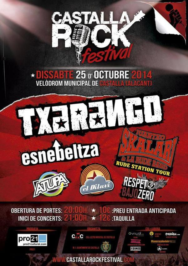 Aquest any comptarem amb les actuacions de Txarango, Juantxo Skalari Kluba, Esne Beltza Esnebeltza, El Diluvi, Atupa i Respeto Bajo Zero ( RBZ )