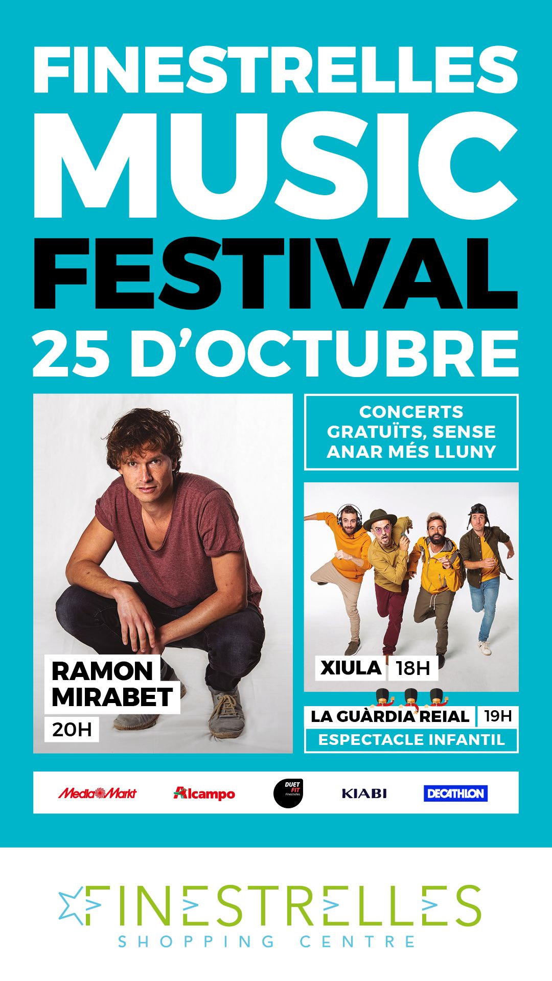 El divendres 25 d'octubre, la Plaça Central de la Planta Carrer de Finestrelles Shopping Centre serà l'escenari de l'edició tardorenca del Finestrelles Music Festival. El festival es desenvoluparà entre les 18.00h i les 21.00h i permetrà gaudir a tots els assistents de 2 concerts i una activitat de dinamització de manera gratuïta.