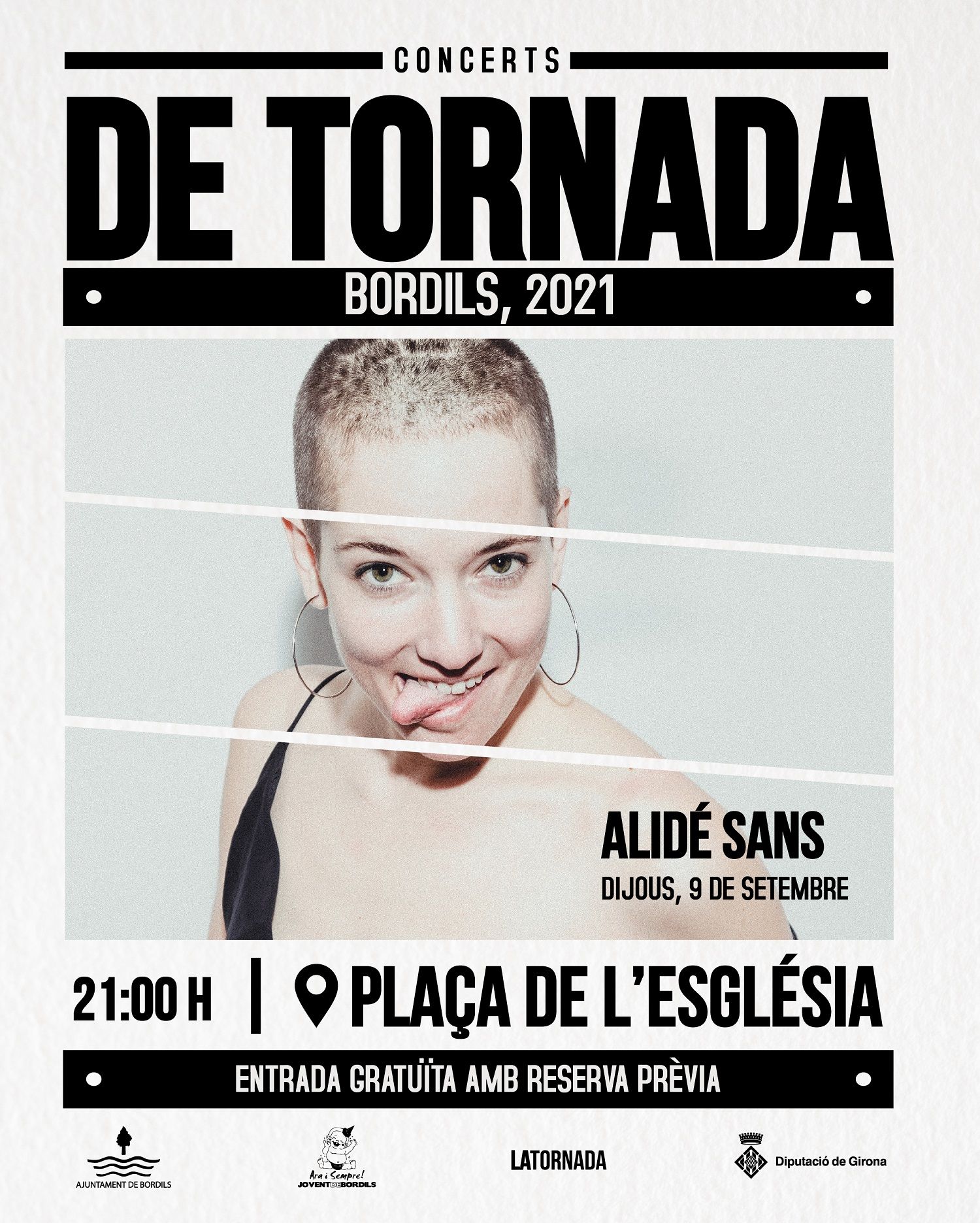 Des de la Vall d'Aran ens arribarà, per tancar els Concerts de Tornada, Alidé Sans. La cantant és tot força i passió, amb una capacitat innata de connectar amb el públic en directe i unes cançons plenes de personalitat. La seva música neix de la tradició i connecta a la perfecció amb la cançó d'autor i els ritmes mestissos, amb l'aranès com a llengua d'expressió.