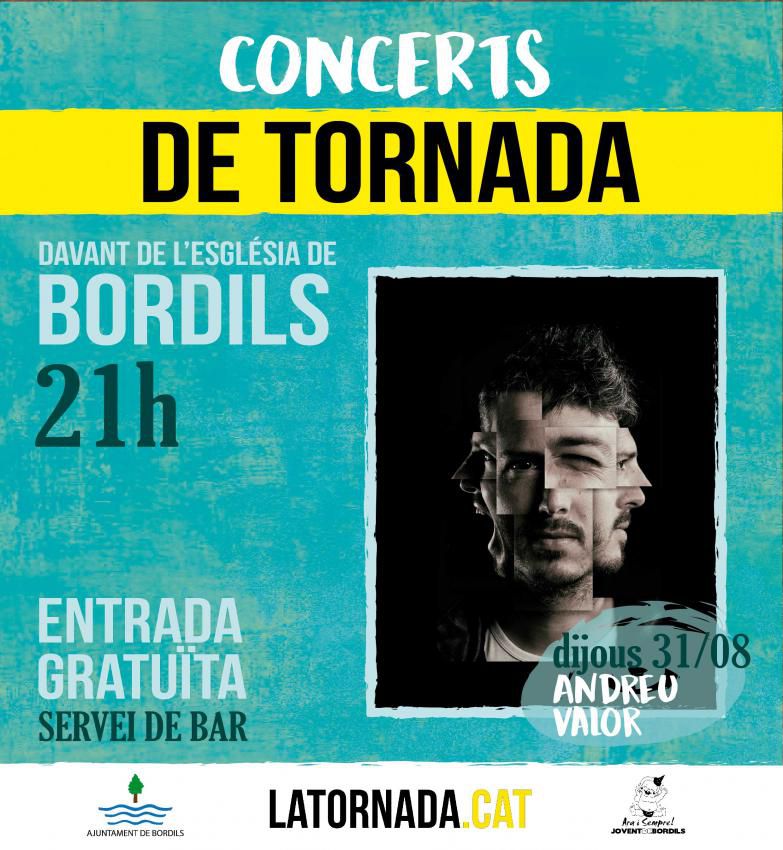 Quina millor manera de combatre la tornada a la rutina que amb bona música? A finals d’estiu, la música prendrà Bordils amb un nou cicle de concerts que vol fer més fàcil la tornada a la feina, a l’escola i a les obligacions. En un espai íntim i proper com ho és la plaça de l’església, el públic podrà degustar uns concerts gratuïts i de petit format que tindran com a protagonistes Marta Pérez i Tona Gafarot, Andreu Valor, Guillem Roma i Mireia Vives i Borja Penalba.