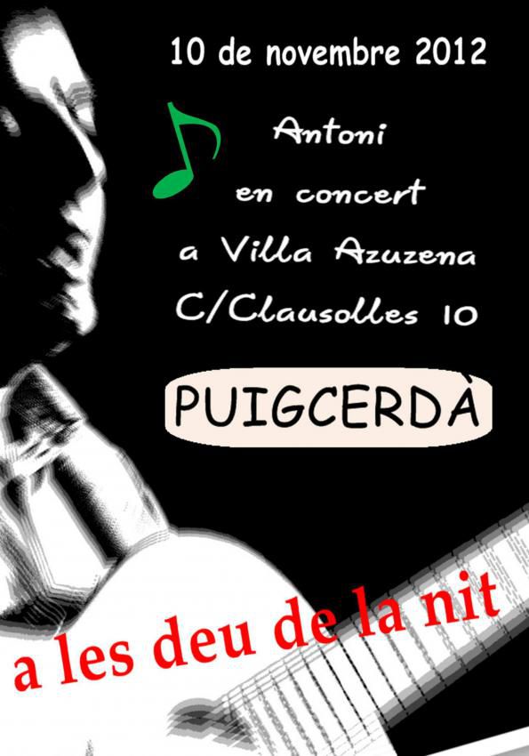 El Cantautor Català de Barcelona, Antoni Garcia Iranzo ens ve a fer un gran concert Intimista a la nostra sala !!! No faltis aquest esdeveniment tan important per a la Cerdanya i per a Villa Azucena, la 1ª Villa Artistica Cultural del Pais.