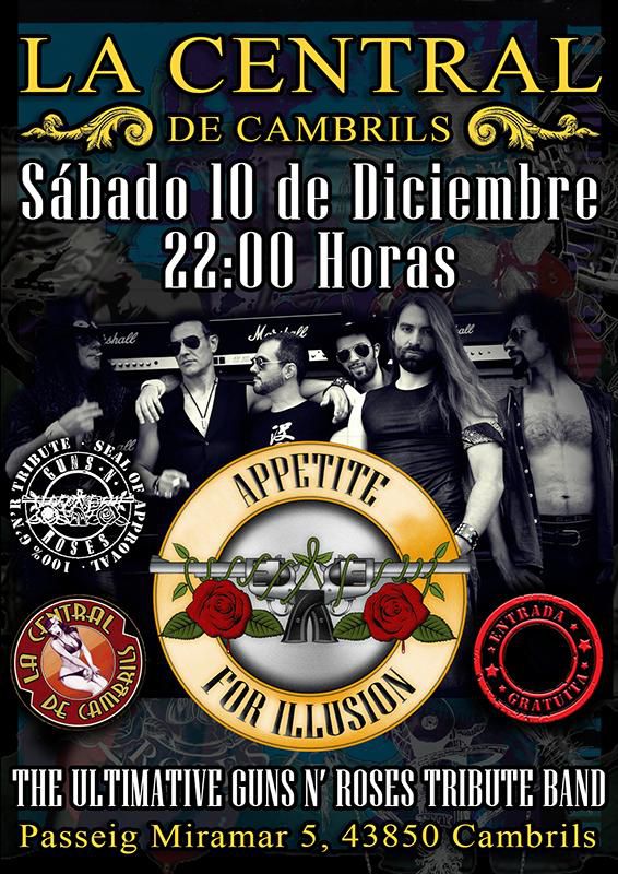Appetite for Illusion – The Ultimative Guns and Roses Tribute Band (AFI) nace de la fusión de miembros de la extinta banda Guns Band Roses con otros miembros experimentados de la escena rockera de Barcelona en los 80’s y 90’s (algunos ex profesionales con varias giras por Europa compartiendo escenario entre otros con Saxon, Motorhead, Rosendo, Dr. Feelgood…) y de jóvenes promesas con espíritu fresco que aportar.