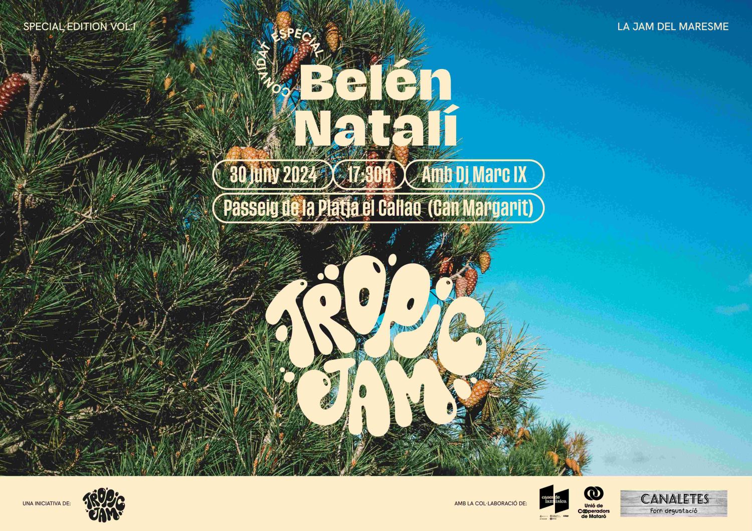 La Jam del Maresme es diu Tropic Jam i amb aquest bon temps passa a l’aire lliure. Des de les 17.30h fins les 22h, al Passeig de la Platja de Callao (Mataró), comptem amb el talent i la veu de Belén Natalí. Per acabar el tardeo després de la Tropic Jam, com a novetat, tindrem al DJ Markixdj que estarà puntxant i cuinant un bon ambient per tenir una tarda rodona de musiqueta. També oferirem servei de barra on hi haurà tot tipus de beguda per fer passar la tarda.