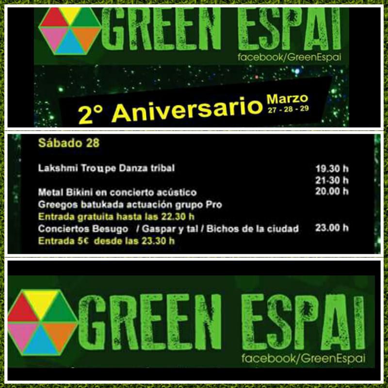 Després d'una temporada sense tocar en directe ens ompli d'il·lusió comunicar-vos que el proper 28 de Març estarem donant-ho tot en el segon aniversari del Green Espai, al Puerto Ocio (?Port de Sagunt)