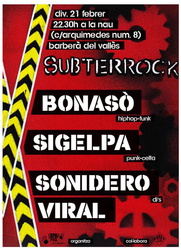 El Casal de Joves Obriu Pas torna a la càrrega amb el SUBTERROCK el cicle de concerts gratuït més veterà de Barberà del Vallès- Amb el hip-hop funk de Bonasò, el punk-celta de Sigelpa i els ritmes tropikals dels djs Sonidero Viral