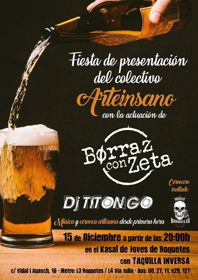 Inauguramos un nuevo colectivo en Roquetas, destinado a difundir y culturizar el mundo de la cerveza artesana. Para celebrar el nacimiento de dicho colectivo, contaremos con la actuación de Borraz con Zeta y de Dj Titongo. Además, nos acompañará el cervecero Barrigulius Birrelis y dispondremos de cerveza artesana y música desde primera hora.