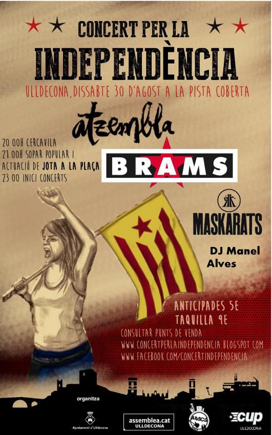 El concert per la independència es realitzarà a Ulldecona el dia 30 d'agost. L'organitzen l'ANC d'Ulldecona, CUP Ulldecona i AMICS.