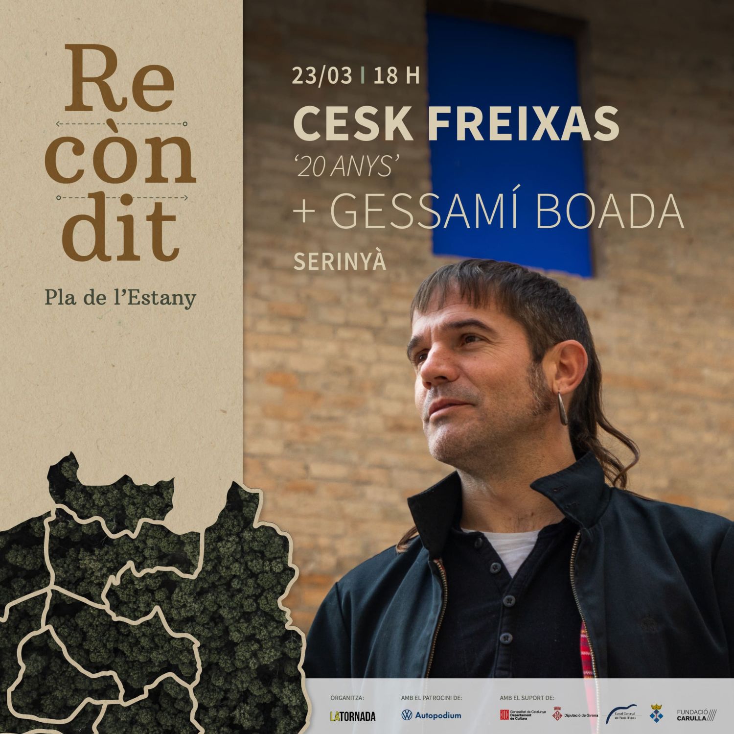 Cesk Freixas és cantant, poeta i escriptor de cançons i s’ha convertit en una de les veus de referència de la cançó d’autor catalana. Aquest 2024, el penedesenc celebra el seu 20è aniversari damunt dels escenaris i compartirà aquest festeig al llarg de tot l’any i fins la primavera de 2025 amb un nou espectacle, una nova banda i un repertori creat especialment per a l’ocasió, integrat amb les peces més representatives de la seva discografia. El maig de 2025, el cantautor ens dirà adéu i aturarà el seu projecte durant un temps. «Potser seran dos anys, o potser en seran més», assegurava en la seva carta de comiat. Amb l’anunci d’aquest comiat, Freixas també ha fet públic que, abans d’apartar-se temporalment del cadafal, publicarà el seu desè disc, que serà un treball en directe que recollirà cançons que s’hauran enregistrat al llarg de la gira.