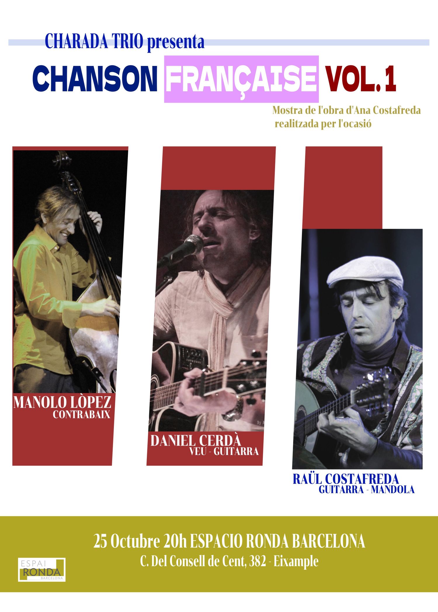 Així doncs, Charada Trio amb un só més mediterrani, entre la rumba, les sonoritats de llevant i el mestissatge, ofereix una nova mirada sobre el gènere de la chanson oferint una selecció acurada de grans clàssics (Jacques Brel, Moustaki, Brassens, Piaf, etc) i d'altres actuals, i a més incorporant una cançó pròpia molt inspirada en aquest repertori de gran bellesa.