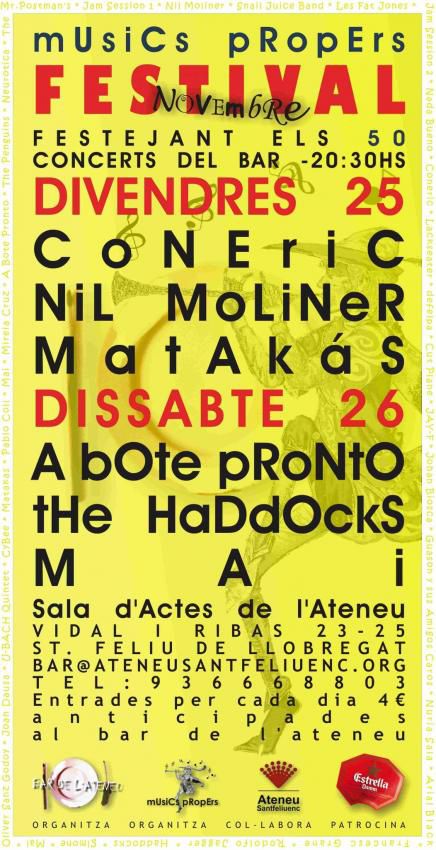 Festejant els 50 concerts del Bar de L'Ateneu - Organitza Bar de L'Ateneu Col-labora Ateneu Santfeliuenc Patrocina Estrella Damm