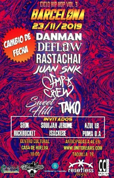 Concierto en Barcelona de los artistas Danman, Deflow, Rastachai, Juan Snk, Fmp Crew, Tako y Sweet Hill más invitados locales.