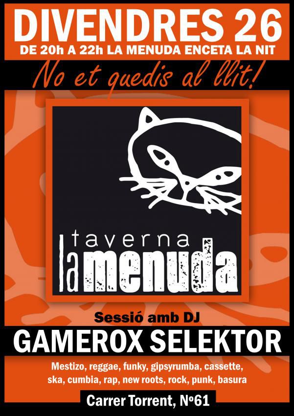 Aquests dies de jalos, de familia, de converses buides...La Menuda trenca la norma. Apropa't a gaudir del vespre del 26 a partir de les 20h fins les 22h amb el Dj ?GAMEROX SELEKTOR (Black Style)?