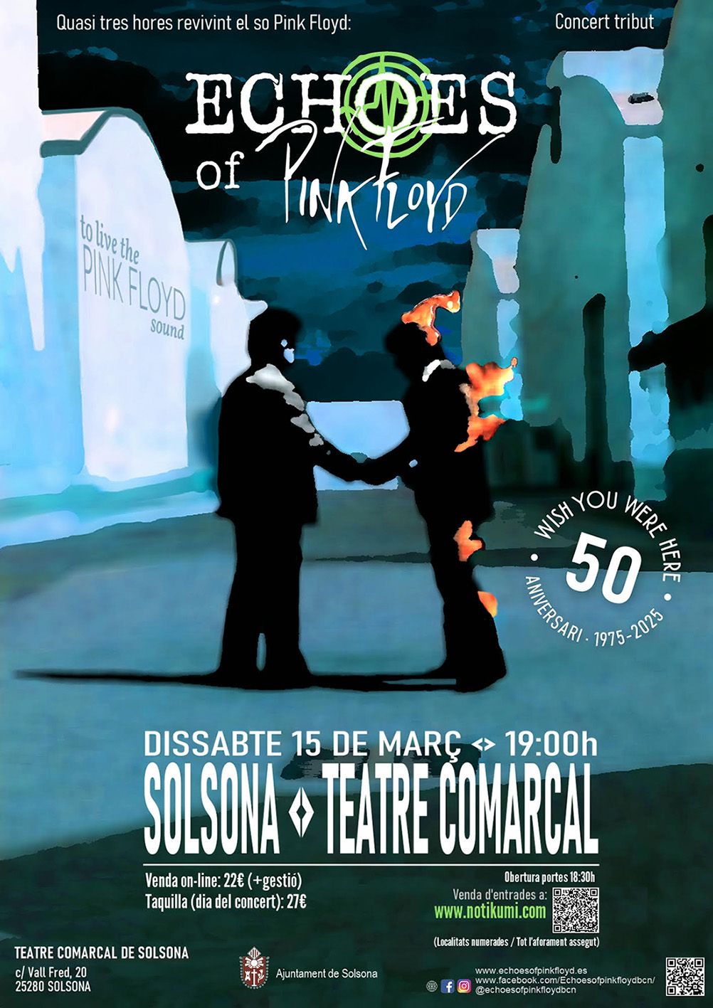 Echoes Of Pink Floyd recrea amb fidelitat el so del quartet anglès acompanyat d'un espectacle visual de llums, projeccions i efectes de so. Amb un show de gairebé tres hores Echoes celebra el 50 aniversari de l'àlbum Wish You Were Here amb la interpretació integra dels seus temes i d'altres que van fer grans els Pink Floyd.