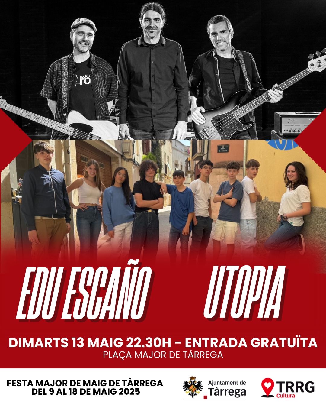 El concert es completarà amb l’actuació del grup de versions Utopia. Format per joves de Tàrrega i comarca, l’any passat es van estrenar al festival Paupaterres oferint un directe que mescla talent, passió i molta energia sobre l’escenari.