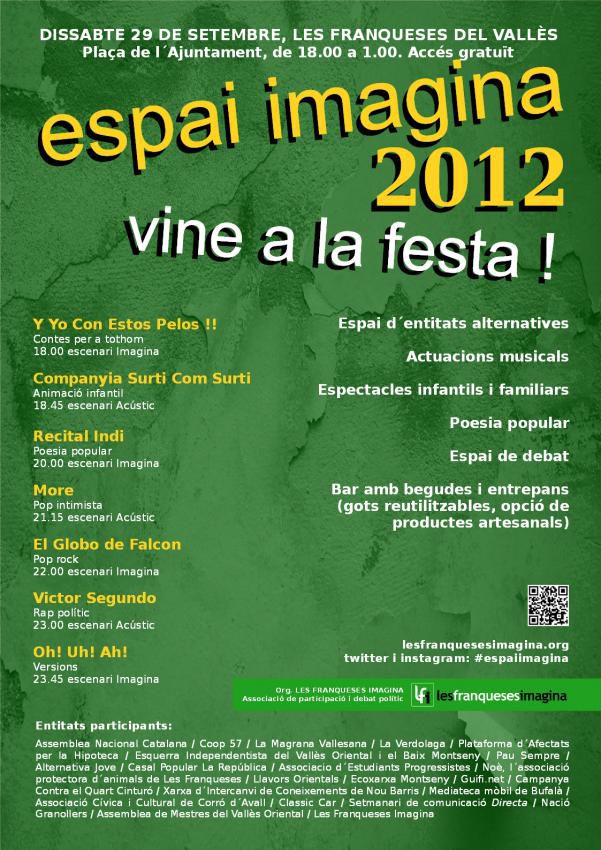 Festival amb entitats de caire alternatiu i actuacions des de les 18 h fins la 01 h de la nit.