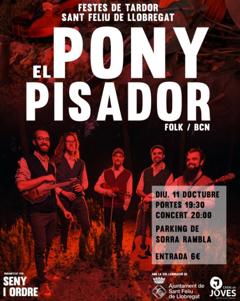 Concert de Festa Major amb EL PONY PISADOR diumenge 11 d'octubre a les 20h al pàrking de sorra de la Rambla Marquesa Castellbell (antic camp de futbol), al costat del Pavelló Juan Carlos Navarro.